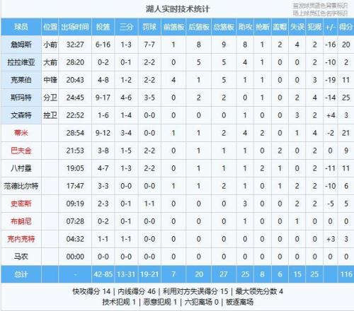 下半場回來,開拓者的火力依舊兇猛,分差繼續(xù)擴大到二十分,湖人這邊依靠斯瑪特等角色球員維持場面,末節(jié)湖人雖然還有追分勢頭,但分差始終無法回到個位數(shù),詹姆斯防守回合還吃到惡犯,最終開拓者主場132-116輕取湖人,送給后者兩連敗。