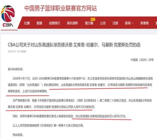 針對此事,CBA公司在賽后,也是進行了調(diào)查,確定山東隊德沃恩·艾庫恩-珀塞爾、馬基斯·克里斯對當值裁判使用了侮辱性語言,他們的這種行為,嚴重違反了體育精神。因此,根據(jù)CBA聯(lián)賽的相關(guān)規(guī)則,對德沃恩·艾庫恩-珀塞爾、馬基斯·克里斯兩人分別罰款30000元。