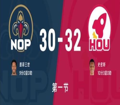 比賽開始火箭主場(chǎng)第一攻,墨菲對(duì)位杜蘭特,奎因?qū)ι昃?,錫安對(duì)位亞當(dāng)斯。杜蘭特第一攻沒有,奎因內(nèi)線被封蓋阿門前場(chǎng)一條龍上籃,奎因干拔中距離也有雙方2-2開局,鵜鶘連續(xù)進(jìn)攻不成,史密斯三分,亞當(dāng)斯前場(chǎng)籃板補(bǔ)籃,申京跳投一波7-0將比分變成9-4,墨菲半截籃幫助鵜鶘打破得分荒,杜蘭特過來跳投被犯規(guī)兩罰一中,杜蘭特這兩場(chǎng)比賽罰球很差。史密斯內(nèi)線上籃打成,錫安中距離回應(yīng),杜蘭特三分開火分差來到9分,錫安空切上籃被亞當(dāng)斯封蓋,回過來杜蘭特中距離干拔再中17-6鵜鶘暫停。回到比賽奎因內(nèi)線上籃幫助鵜鶘追分,阿門空切暴扣,雙方投籃命中率都很低,米西補(bǔ)籃隔扣亞當(dāng)斯,史密斯突然爆發(fā)連投帶罰一人打了一波5-0,米西聯(lián)手貝兩次籃下得手幫助鵜鶘艱難追分17-26,霍金森3+1后鵜鶘打了一波6-0分差來到3分,一波對(duì)攻后火箭32-30領(lǐng)先2分結(jié)束首節(jié)!