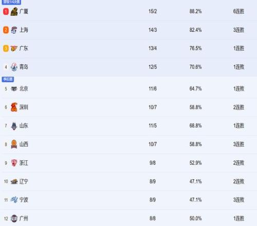 CBA最新排名!上海緊咬廣廈居前2,遼寧跌至第十,新疆有望覺醒!
