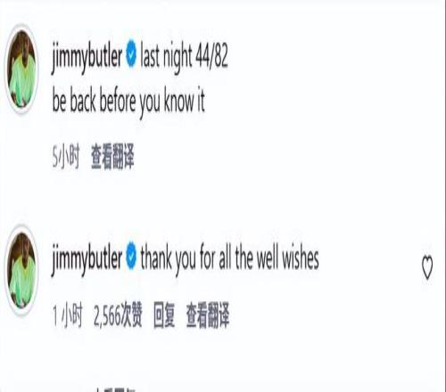 在勇士官方宣布這一消息前,巴特勒已經(jīng)更新社媒,曬出自己的PS“將軍照”,配上了大量勇士比賽照,并寫道:“44/82,我很快就會(huì)回來(lái)!”據(jù)悉,巴特勒此舉一語(yǔ)雙關(guān),明面上是一位將軍名字叫Soreness,但也可以翻譯成“全身酸痛”,放在NBA傷病報(bào)告里,基本意思是球員只是身體疲勞、有點(diǎn)不舒服,通常意味著沒(méi)有大事。