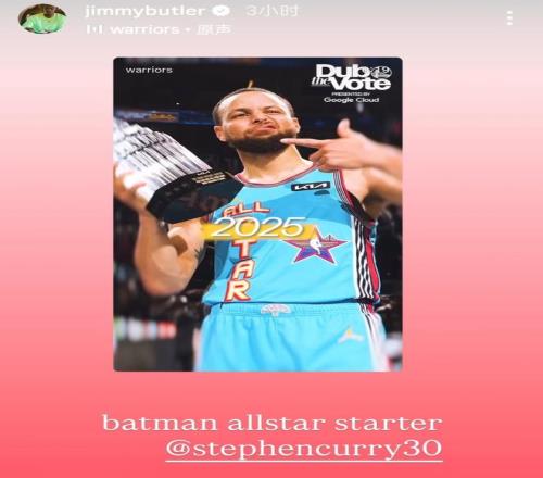 巴特勒還在社媒評(píng)論區(qū)回應(yīng)大家:“感謝大家的所有祝福?!绷硗猓贗G的快拍中,他也不忘曬照祝賀庫(kù)里入選全明星首發(fā),他配文寫道:“蝙蝠俠,全明星首發(fā)@庫(kù)里?!?/p>