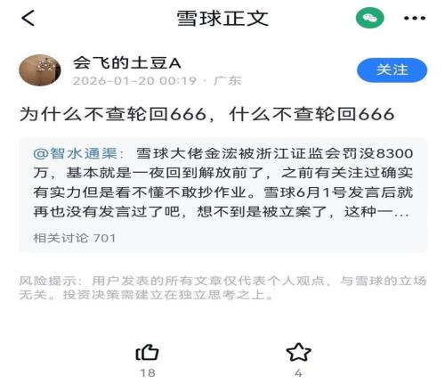 事實上,在“金浤”賬戶擁有人金永榮被監(jiān)管處罰的事件發(fā)酵后,雪球平臺上就有用戶要求封禁其他“大V”的聲音,其中就包括此次被雪球封禁的“輪回666”。