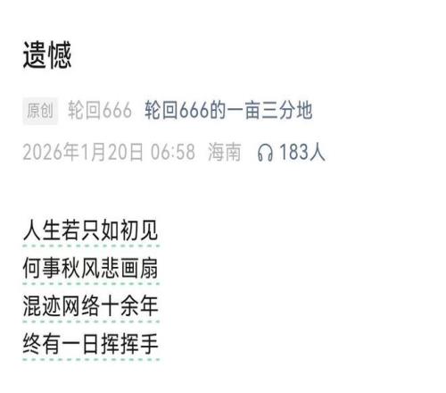 在平臺用戶之外,此次封禁的賬號擁有人也有表態(tài)。“輪回666”擁有人在今日于公眾號“輪回666的一畝三分地”發(fā)布了名為“遺憾”的文章表示,“混進(jìn)網(wǎng)絡(luò)十余年,終有一日揮揮手”。