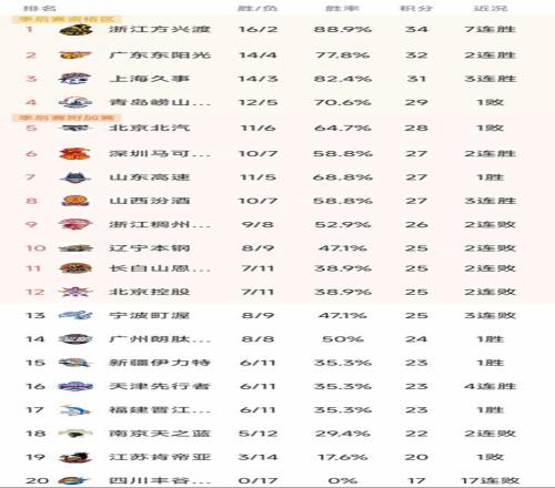 CBA最新積分榜:廣廈7連勝,北控慘敗23分,廣東11998吉林排第2