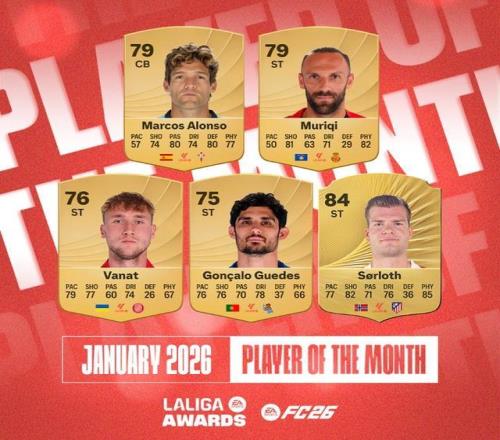 北京時(shí)間1月22日,西甲1月最佳球員候選名單公布,這5名球員為馬科斯-阿隆索、穆里奇、瓦納特、貢薩洛-格德斯、瑟洛特。