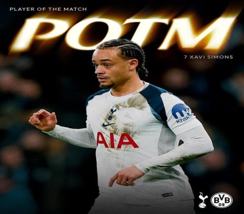 熱刺官方宣布,哈維-西蒙斯當(dāng)選球隊(duì)與多特蒙德一役隊(duì)內(nèi)最佳球員。