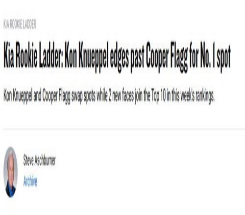 NBA官網(wǎng)新秀榜更新:克努佩爾超越弗拉格登頂開拓者樂福升至第8